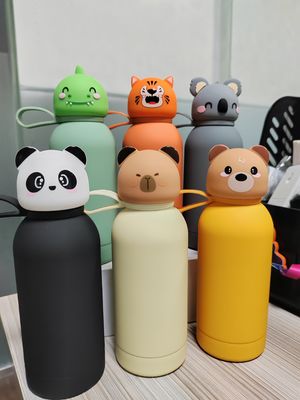The cute thermos water bottle with custom silicone lid combines premium stainless steel construction with excellent insulation properties. The standout feature is the customizable silicone lid available in various colors, shapes, and branding options.