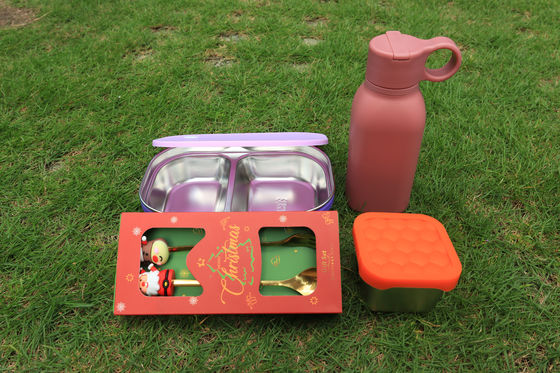 Premium Silicone & Stainless Steel Tableware Gift Set | Eco-Friendly Divided Lunch Box, Water Bottle & Cutlery – Perfect Christmas Gift